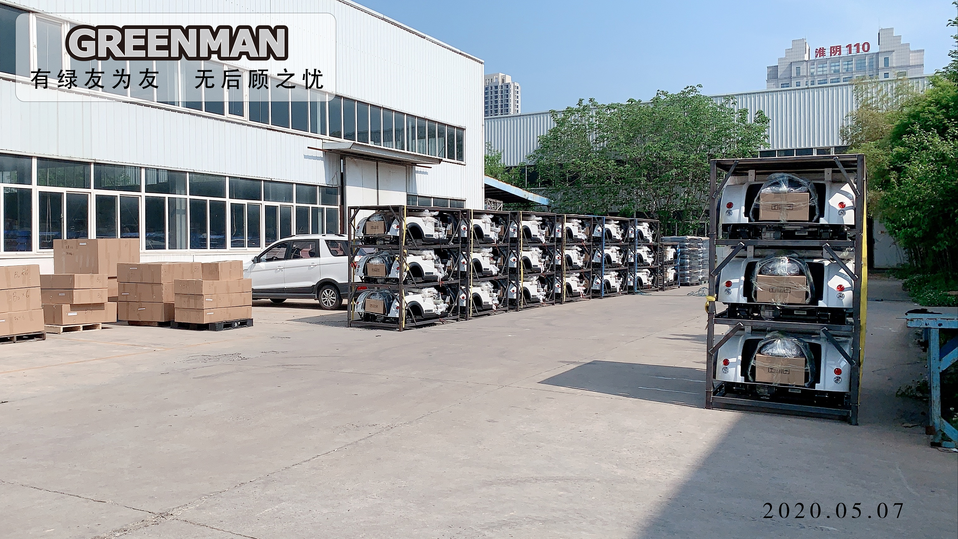 5月7日,滿載GREENMAN 電動車輛的三個集裝箱駛離綠友集團新能源車輛有限公司淮安生產基地。這批貨物將通過海運于5月下旬抵達曼谷。