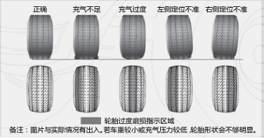 - 使用前請檢查車輛輪胎使用情況,是否漏氣、磨損嚴(yán)重或出現(xiàn)破損,如有上述情況,禁止使用。請及時調(diào)整前束或更換新的輪胎,否則會損害輪胎壽命或者造成爆胎等危害人身安全的事故。