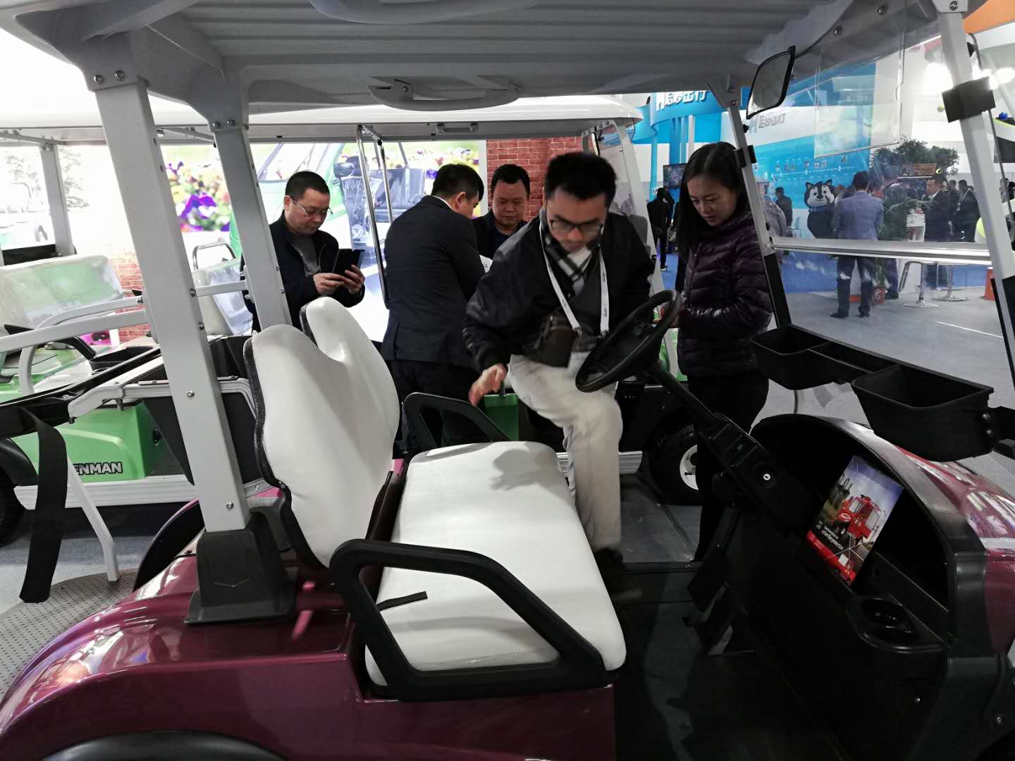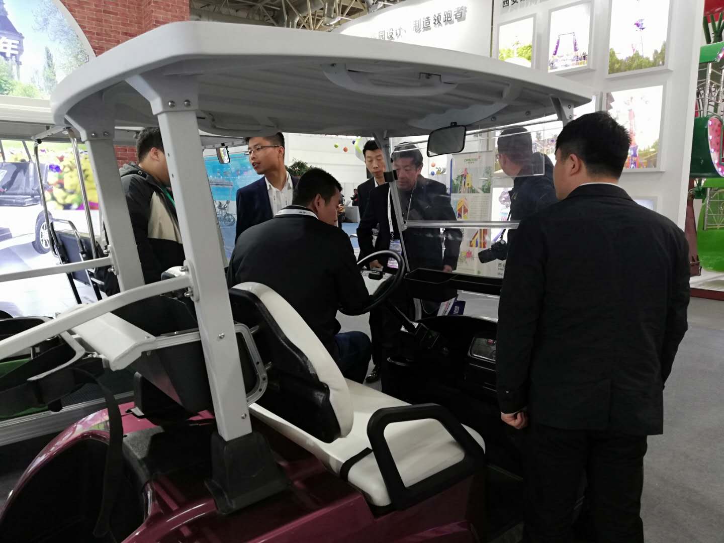 展會(huì)上,我公司電動(dòng)車輛吸引了眾多參觀者的目光,來(lái)自景區(qū),游樂場(chǎng)等各行各業(yè)有合作意向的專業(yè)客戶和我公司工作人員進(jìn)行詳細(xì)地咨詢與洽談。
