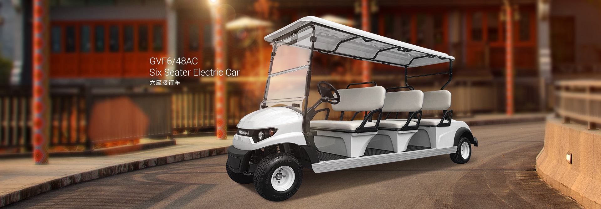 六座接待車性能穩(wěn)定、操控輕便, 實用于高爾夫球場、大型游樂園、高檔酒店等。