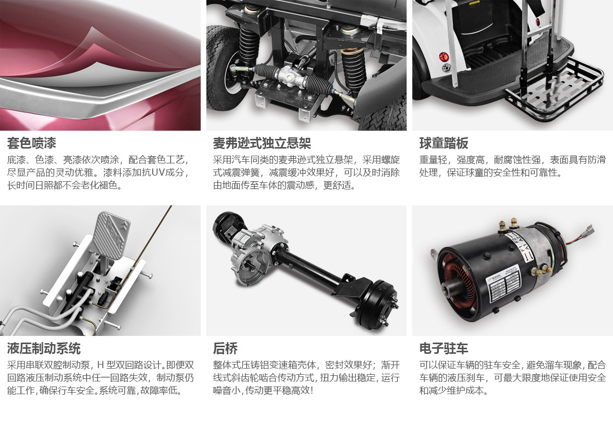 同向四座高爾夫球車,可以供4名球手和2名球童同時(shí)駕乘,也可以供3名球手和3名球童同時(shí)駕乘。